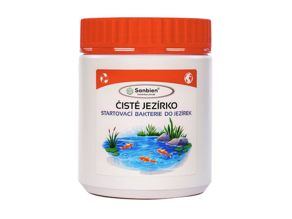 Přípravek Sanbien Čisté jezírko – startovací bakterie do jezírek obsahuje směs nepatogenních liofilizovaných bakterií a živin, které pomáhají obnovit přirozenou biologickou rovnováhu vody.